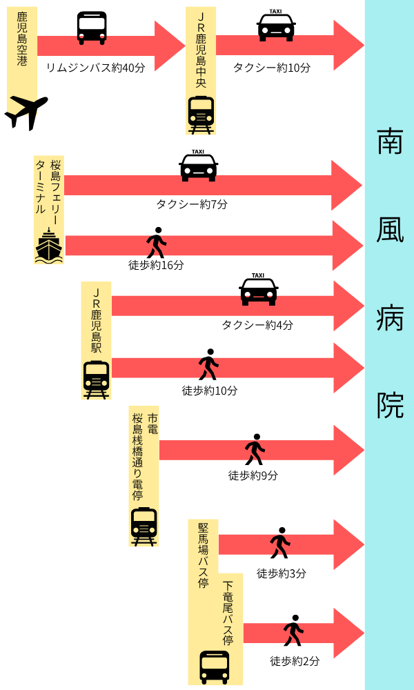 | 鹿児島空港 | 約40分 高速バス利用 | 時刻表 |