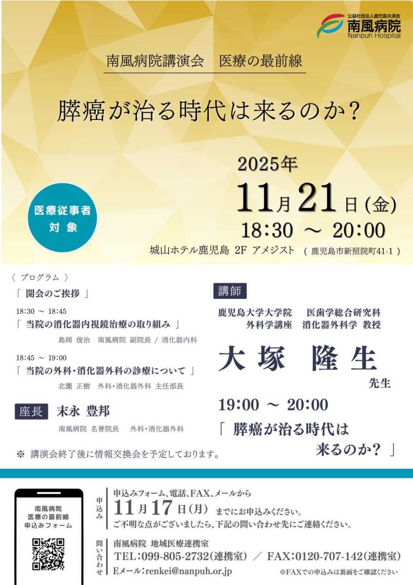 11/21 医療の最前線「膵癌が治る時代は来るのか?」を開催いたします。(医療従事者対象)