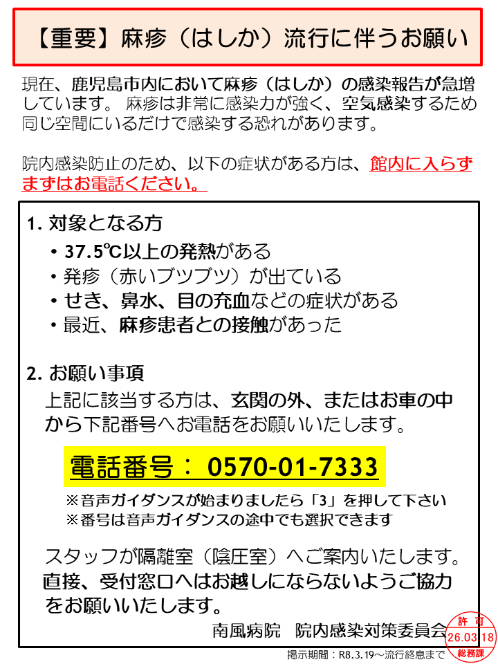 【重要】麻疹(はしか)流行に伴うお願い