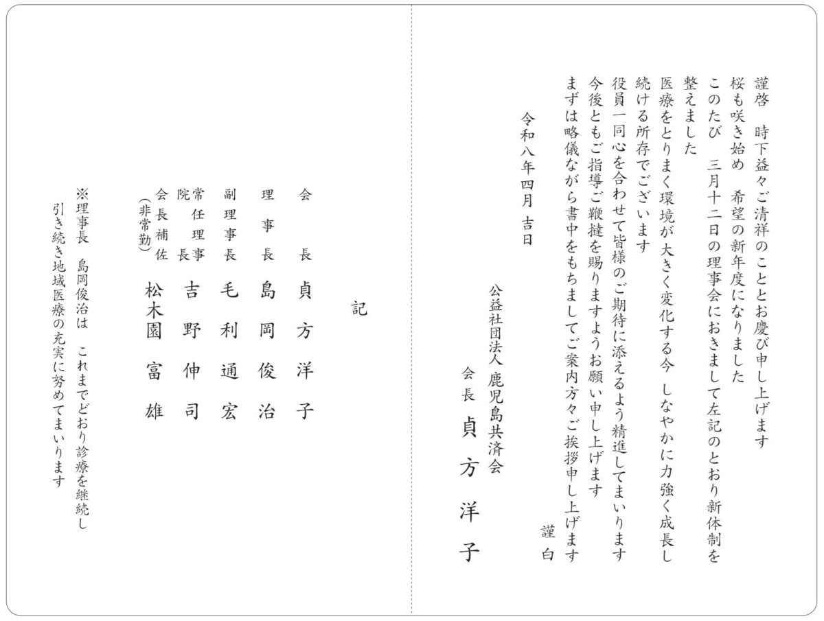 当法人の一部の役員に職位の変更がございますのでお知らせ致します。