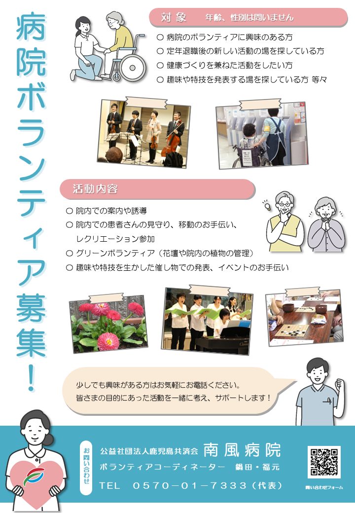 南風病院ボランティア応募・相談は下記のフォームにて受け付けております。